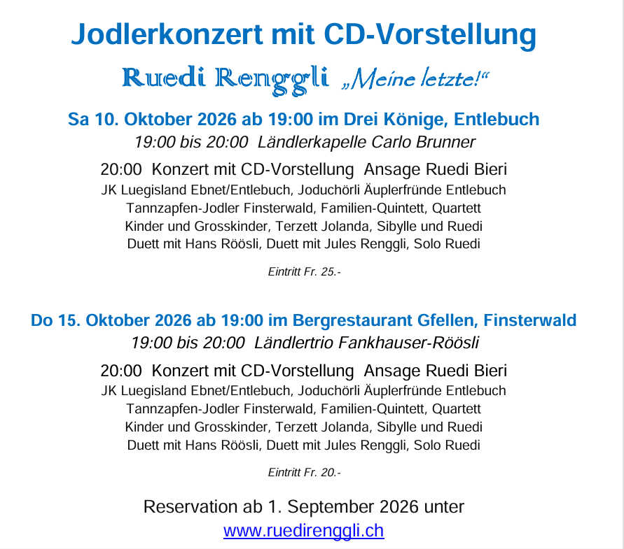 Ein herzliches Dankeschön an Ruedi Renggli für die Einladung zu seinem Konzertabend mit CD-Vorstellung.